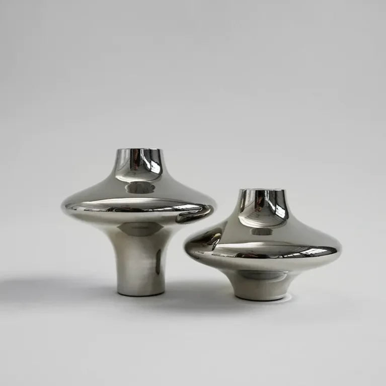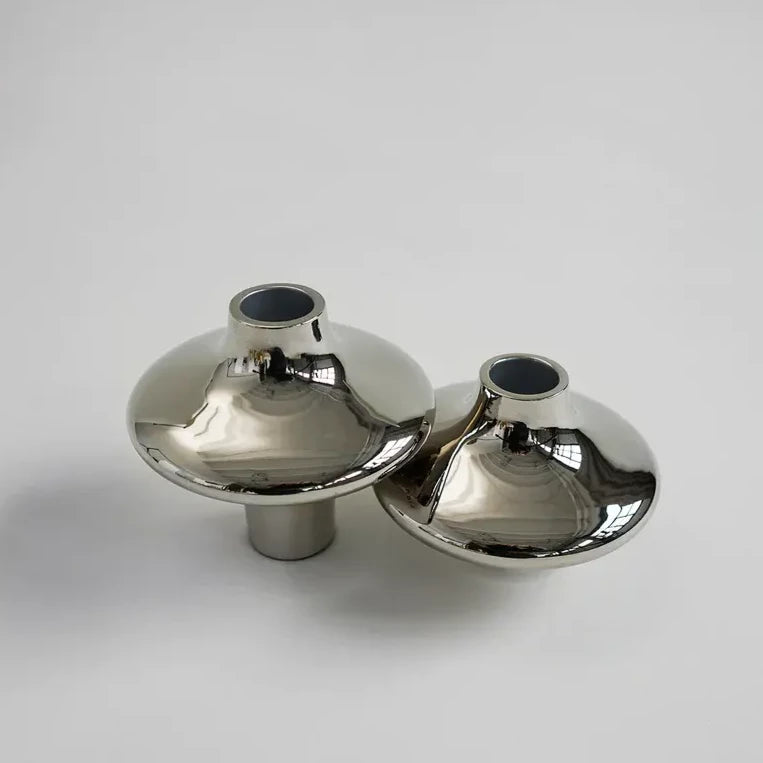 A timeless shape - inspired by two silhouettes staged together, silver and gold, large and small - Creating a calm and warm aesthetic - Use it with candles or without - Sold individually
