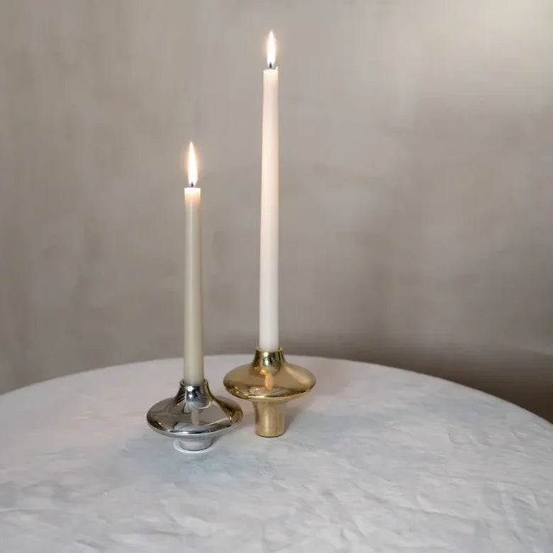 A timeless shape - inspired by two silhouettes staged together, silver and gold, large and small - Creating a calm and warm aesthetic - Use it with candles or without - Sold individually
