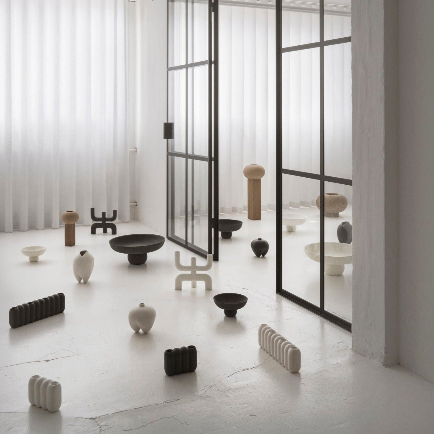 A series of ceramic lamellas, the Tube Candle Holders is all about repetition as a minimalistic sculptural detail. Inspired by 70’s sculptural artwork and design, tube is based on a single oval shape, repeating itself into a continuous sculptural object. Tube comes in two different sizes, with two candles or four candles. The candle holders are made of ceramic and as it is a hand glazed natural product, the colours may vary slightly.