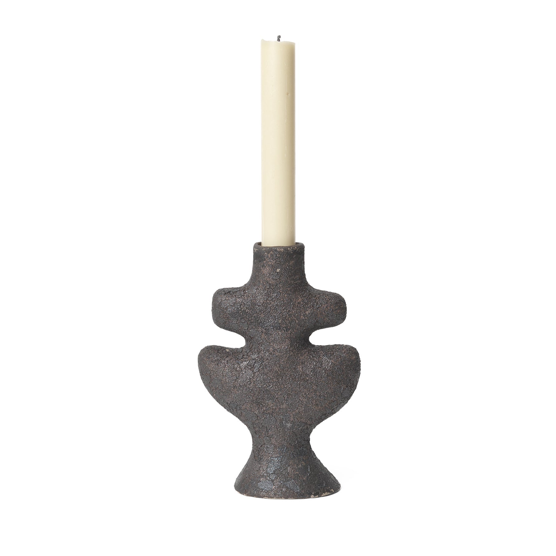 The Yara Candle Holders combine earthy tones and rough textures to form an organic expression. Crafted from ceramic, each piece is coated with a reactive glaze that ensures a unique and varied appearance. Inspired by the stone and marble figurines that were made in the Cycladic era, the candle holders are both abstract in expression and simple in form. They can be showcased individually or combined with other pieces from the Yara collection, creating a harmonious yet contrasting display. This product features a reactive glaze that creates a unique appearance. Variations may occur.
